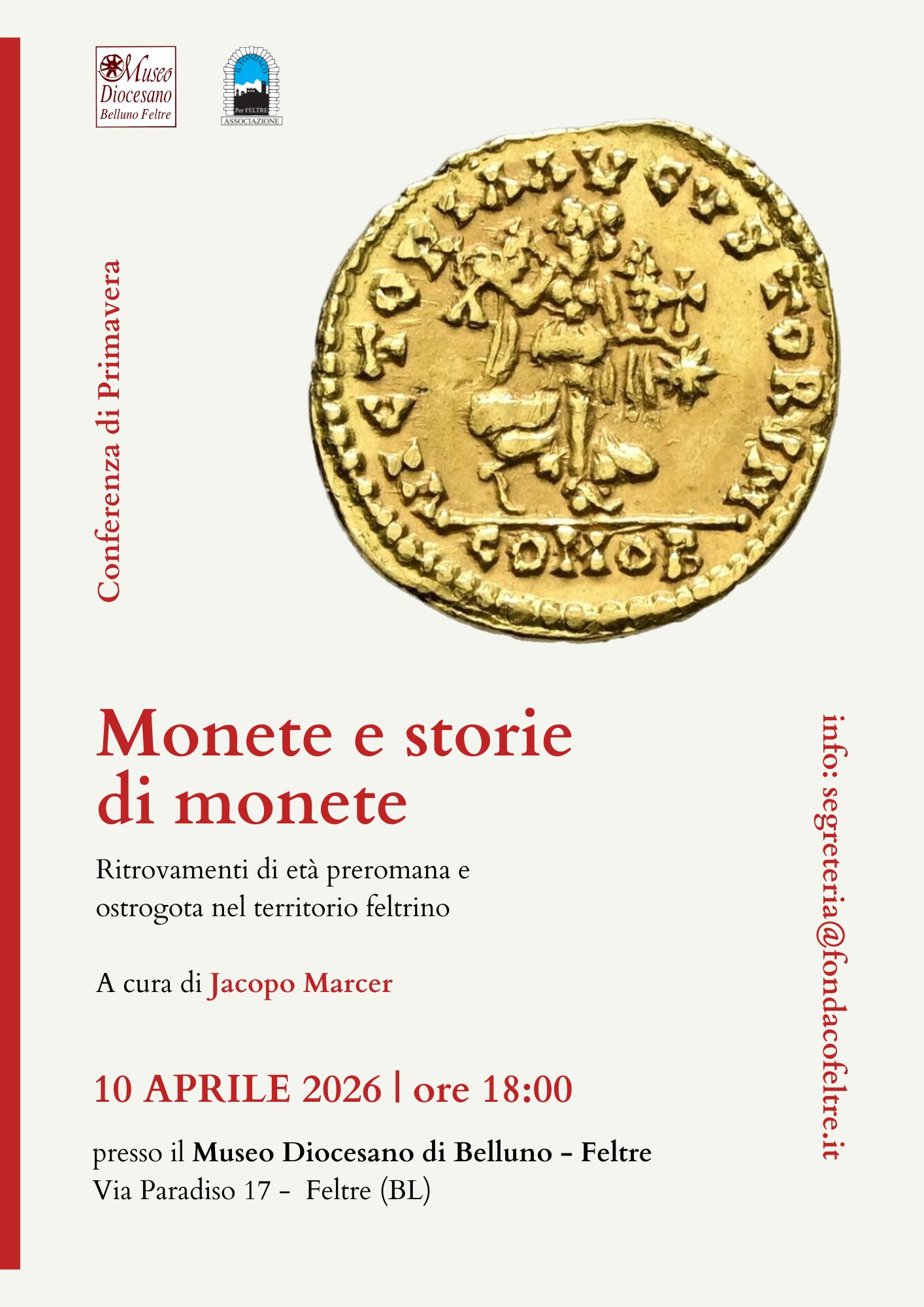 Attraverso lo studio di ritrovamenti provenienti dal territorio feltrino, la conferenza guiderà il pubblico in un percorso che attraversa epoche diverse, soffermandosi in particolare su: